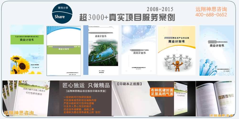 商业计划书(也叫融资计划书)英文名称为Business Plan,是企业或项目单位为了达到招商融资和其它发展目标之目的,是国际惯例通用的标准文本格式形成的项目建议书,是全面介绍公司和项目运作情况,阐述产品市场及竞争、风险等未来发展前景和融资要求的书面材料。目前,很多中小企业都缺乏专业撰写商业计划书的能力,缺乏对项目的系统整合、全面分析能力,导致在融资方面难以获得投资商的青睐。 到今天为止,远翔神思已经成功的为全国的27个省市自治区的企业,提供了高品质的商业计划书及融资报告的编制服务。公司具有专业化的咨询团队,首席咨询师具有7年以上项目运作经验,服务热情,收费平实,仅需4000-1万元就可以编写一份专业的商业计划书,是您的首选项目服务机构。